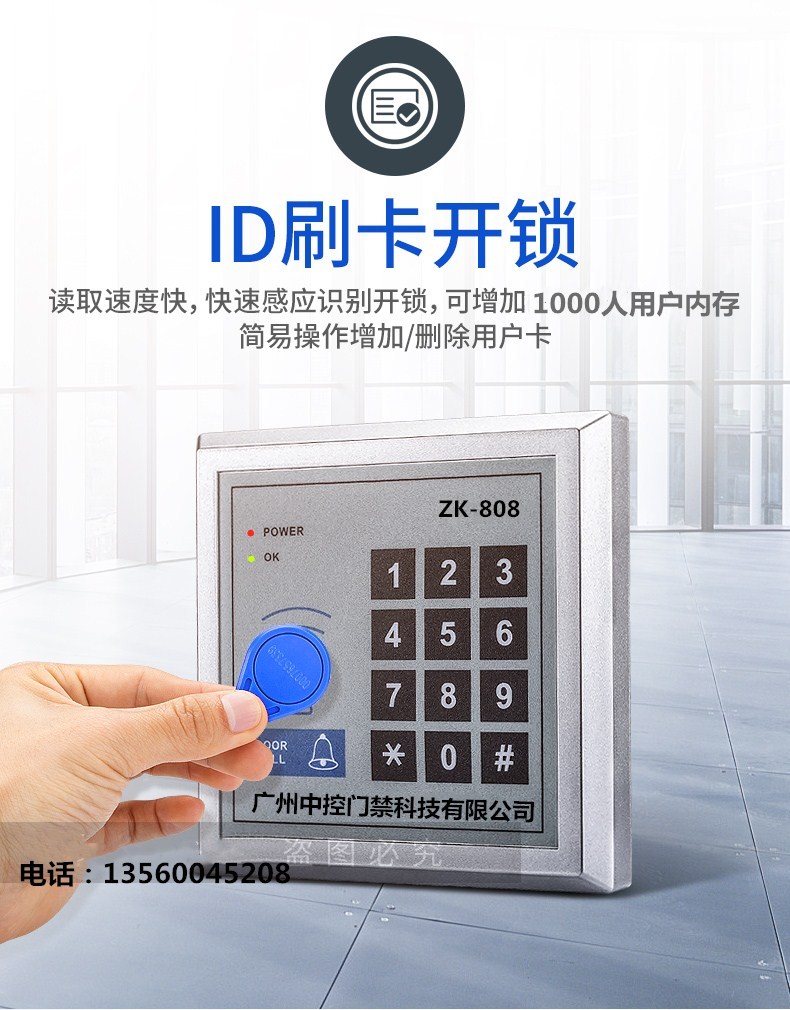 中控密碼門鎖 ID刷卡門禁ZK-808