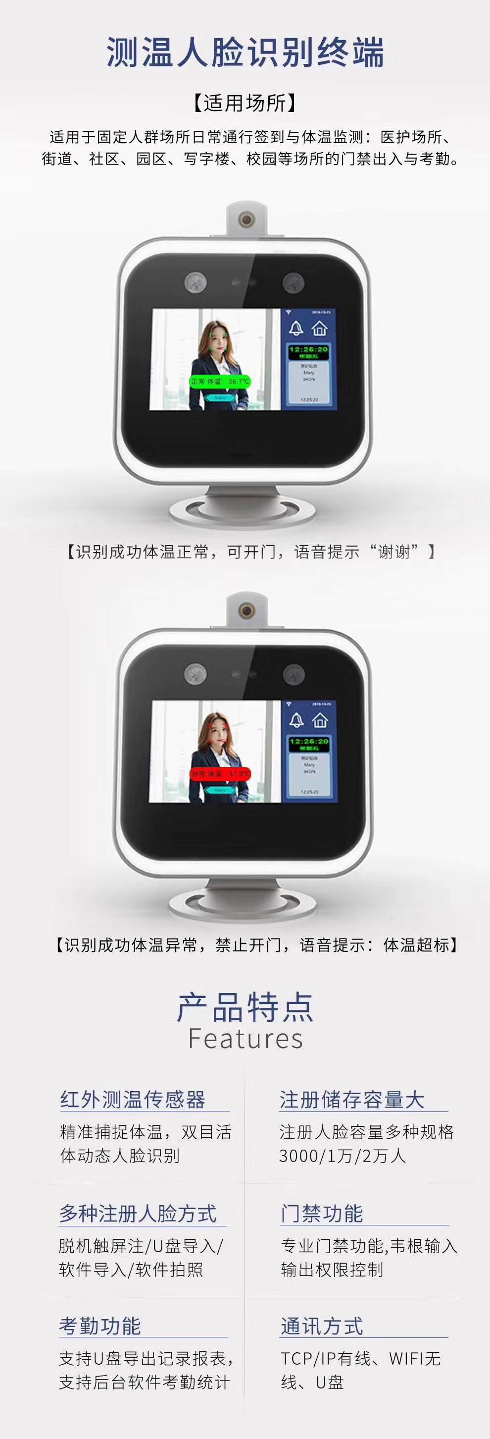 測體溫人臉識別門禁考勤機(jī)